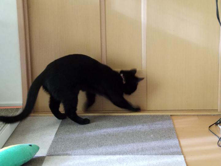 ポンちゃん寂しそう・・・と思ったら、「あたちもそっちに行きた~い」とばかりに、ドアをカキカキしました。