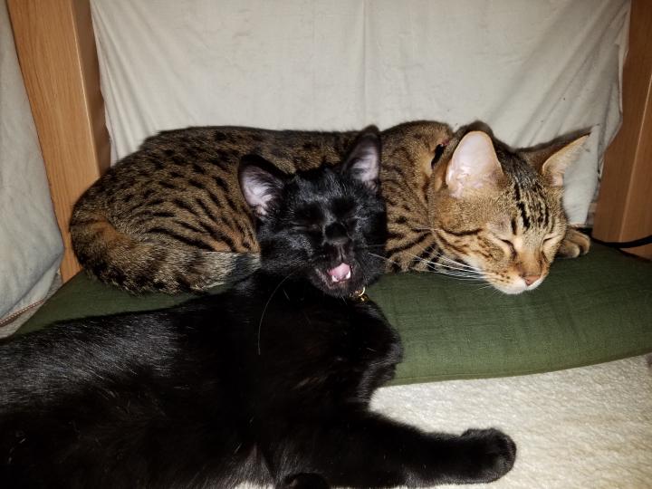 朝からドタバタうるさくて、みんな寝室を追い出されたのですが、いつのまにかポンちゃん以外は寝室に入って寝てました。