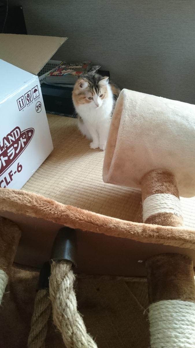 相変わらず、興味はダンボールにあるようですが、組み上がったらタワーの魅力にメロメロになるに違いありません。