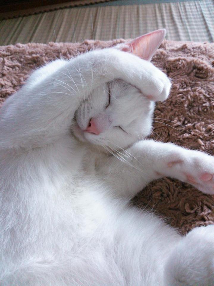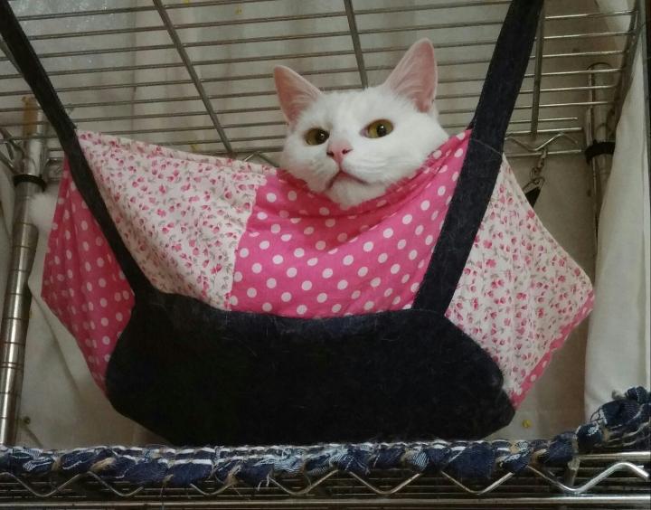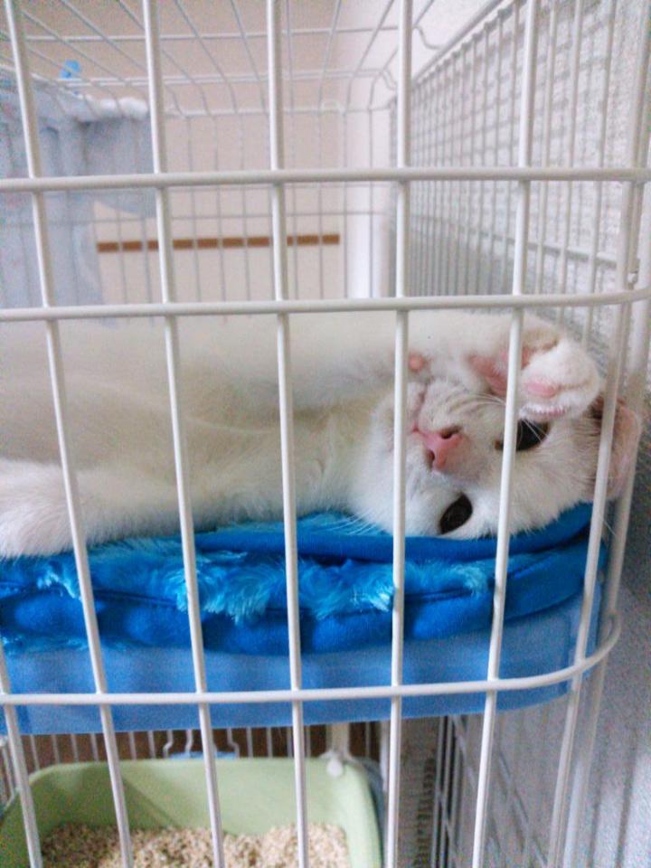 頭のてっぺんだけ黒い毛が生えていて、おもしろポイントだったのですが、今は白い毛に生え変わっていて少し淋しいです。
