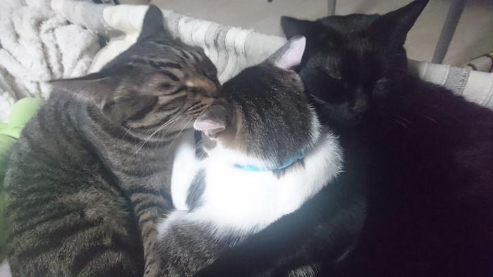 こたりんは、小倫と天の間にズケズケと割って入って真ん中で寝る強メンタルなお方。