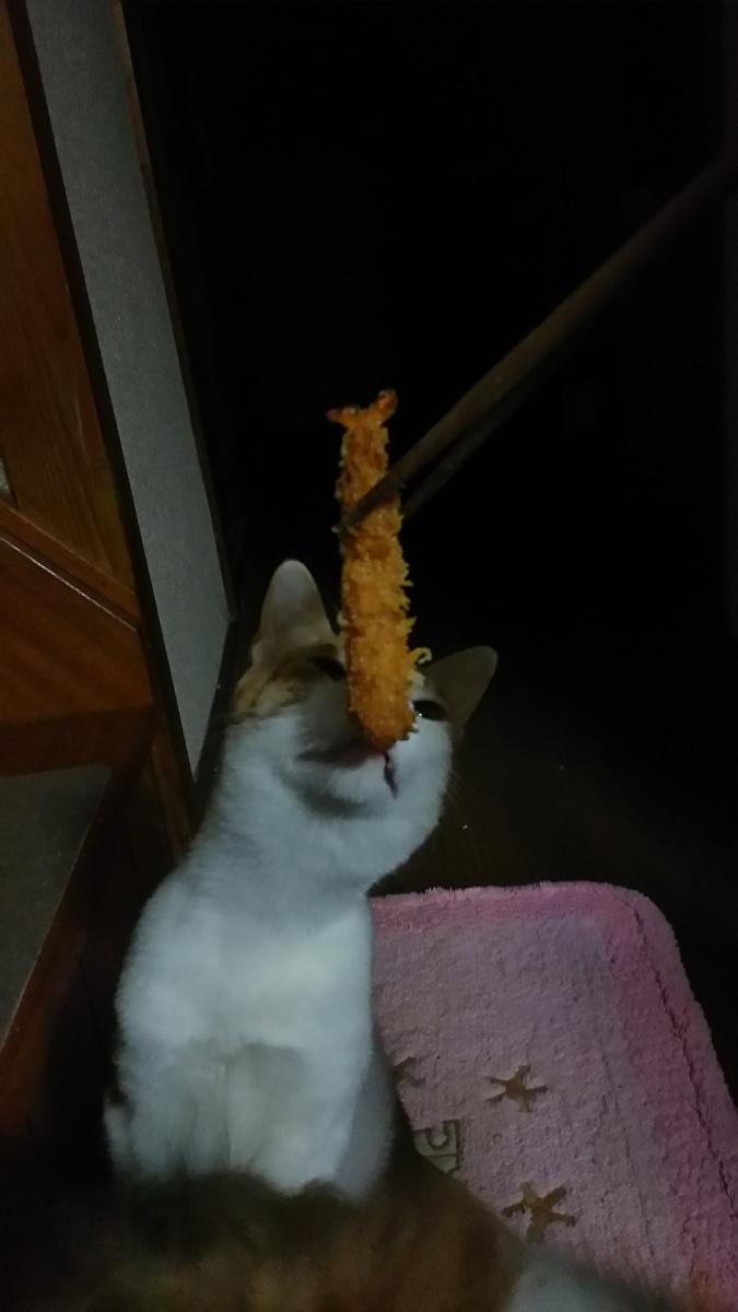 ジジ、エビフリャイにテシテシ。