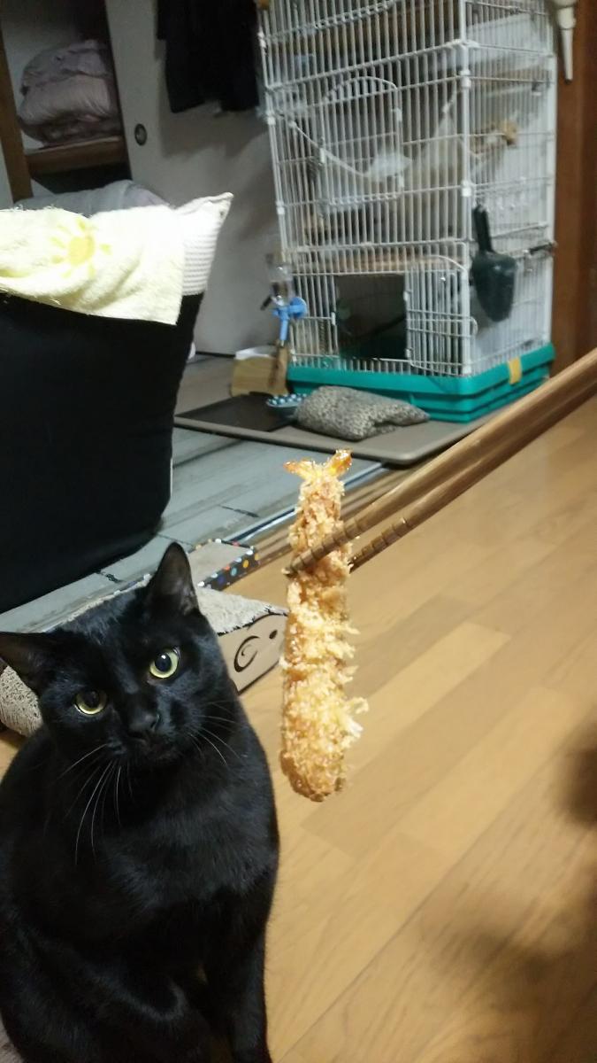 キキ エビフリャイに見事に釣られる。