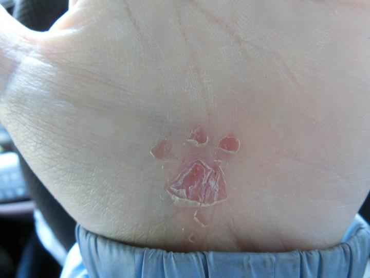 手のひらと片膝に擦り傷。手はおろし金でやったみたいになってしまいました。