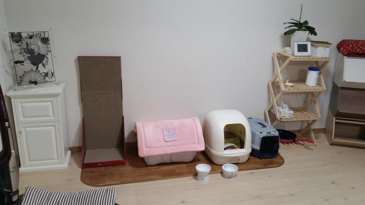 トイレにキャリーに爪切り、爪とぎ。それにごはんとお水の器。そして今日(正確には昨日かな)待望のおうちが来ました!