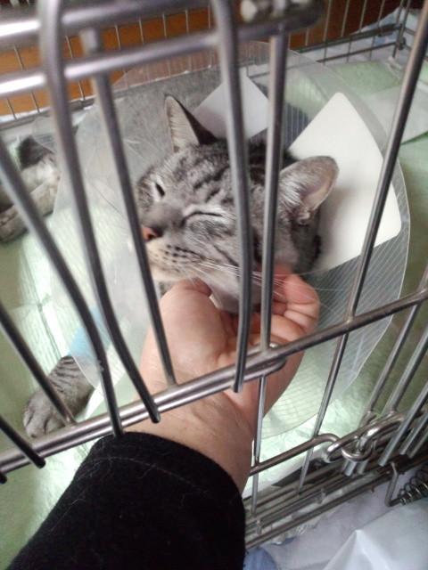 なでていれば横になっていてくれるので 狭い差し入れ口から