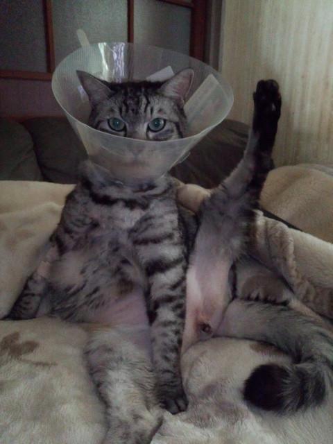 カラーははまってるわ おチリに痛みや違和感があっただろうし