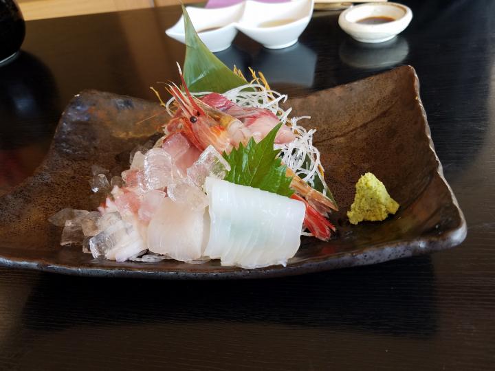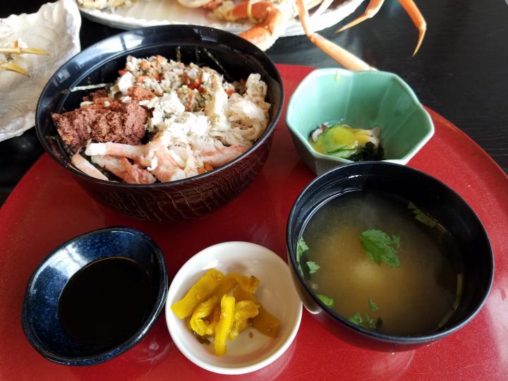 今回のメニューは刺し、焼き、茹で、せいこ蟹の丼、刺身盛り合わせです。