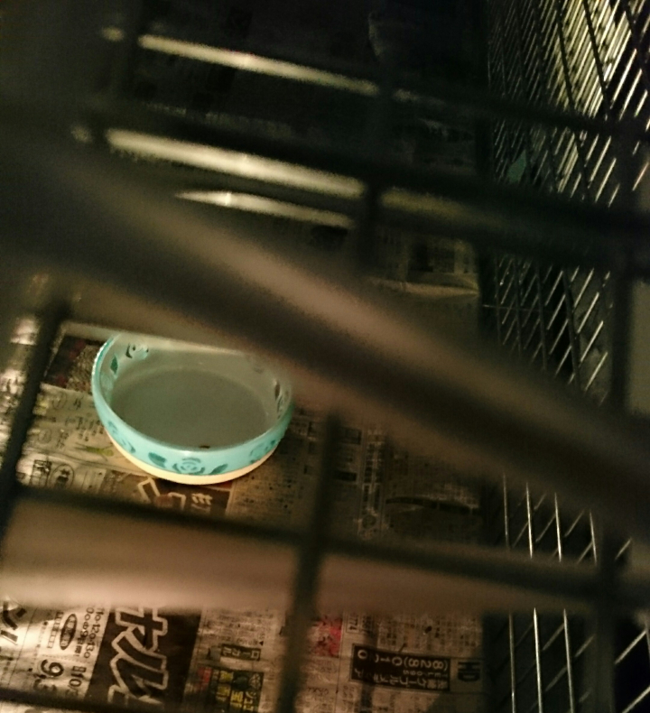 大型の中のご飯がすごく気になるようで、覗き込んでは後退り、後退っては覗き込み。