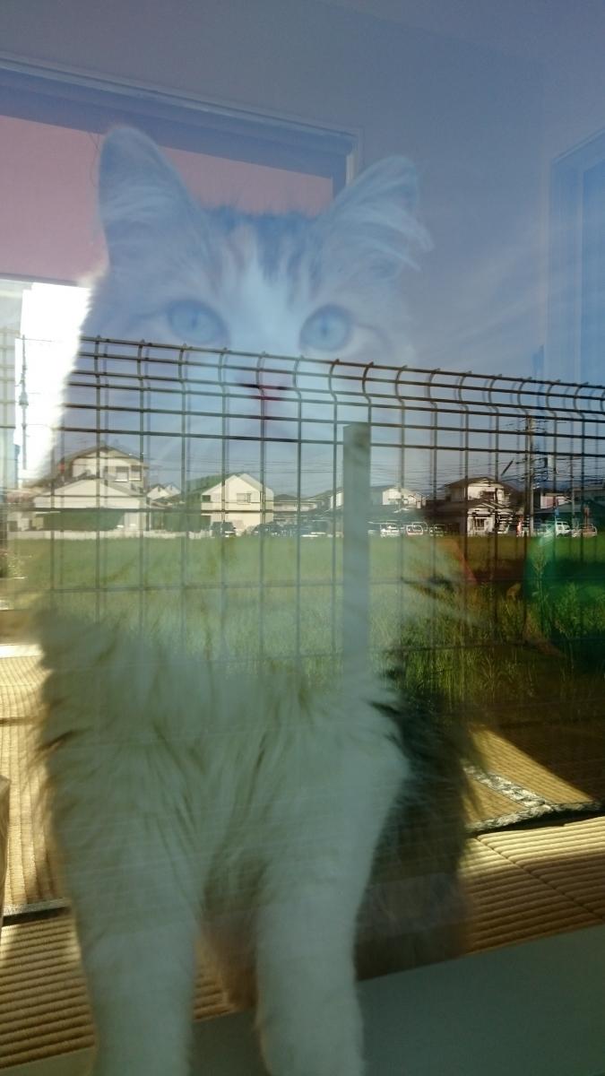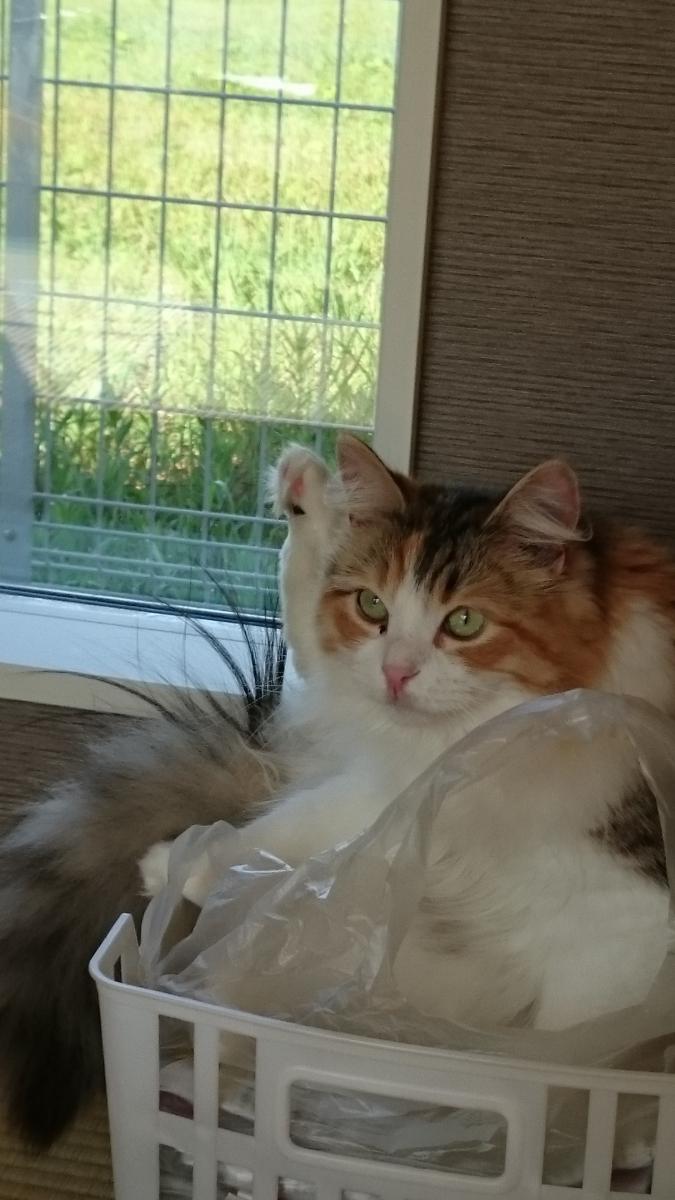 実は、ダンボールのキャットハウスに入っているところです。
