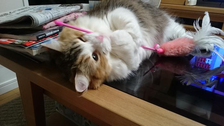 じゃらしと格闘ぎんちゃんです。