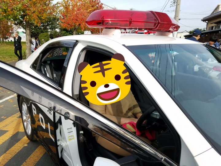 産業祭りでパトカーや消防車、救急車を見せているコーナーがあり(もちろん本物で、おまわりさんや消防士さんが説明してくれました)、動かしはしないけど乗るだけなら乗せてくれてたんです。