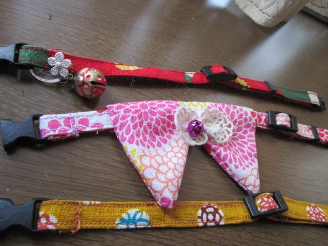 作ってて思ったんですが(経験も踏まえて)首をカキカキする時に首輪にも爪が当たるので、生地は爪が引っ掛からないものが良いのかと思いました。(刺繍は失敗ですもの。。。)
