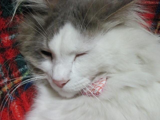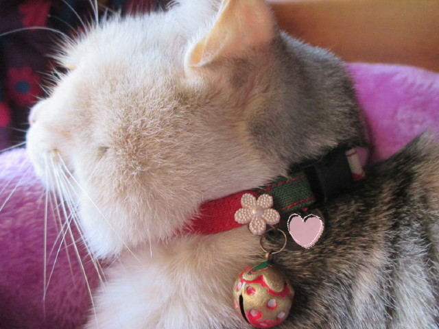 その上真ん中に付けた鈴とリボンを、装着するなり「これ、邪魔!」とばかりに取ろうとして。。。