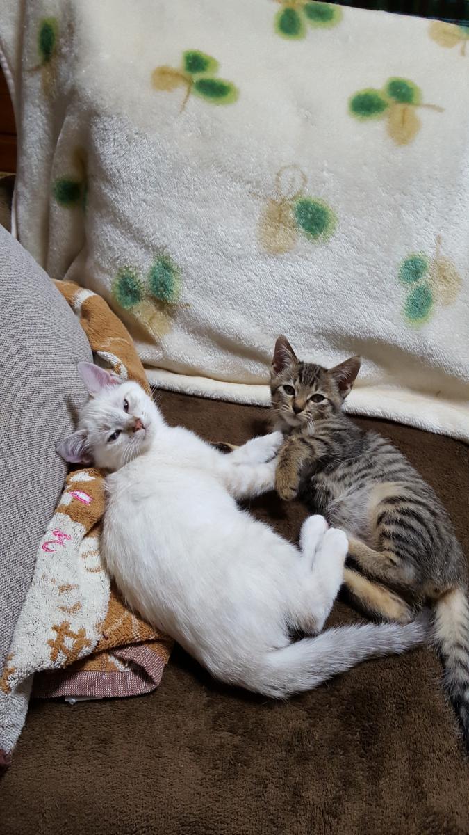 2匹とも元気にいっぱいで、私が寝てる間に運動会してても気にせず寝てられる方だからいいんだけど、顔の上を通過していくのはさすがにやめて欲しいなあ💦