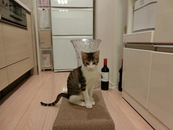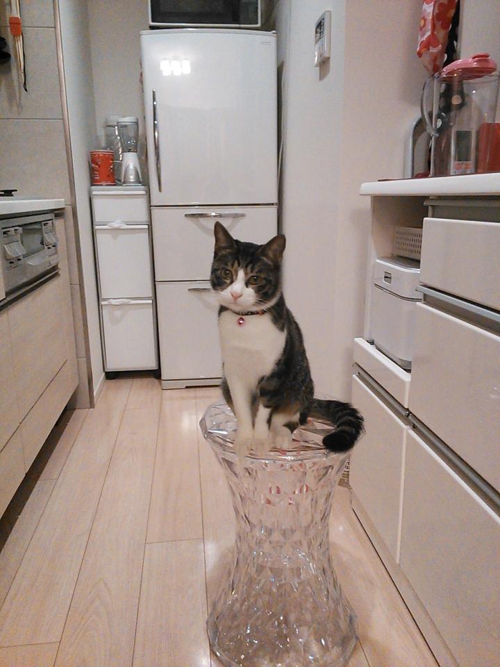 そうしたら、ゆずはゆずでキッチンでポーズとってるし。