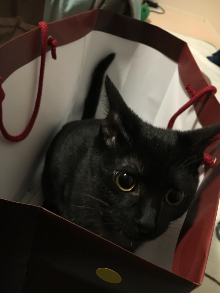 結婚式の引き出物の袋で遊ぶ自由猫けんたろうさん