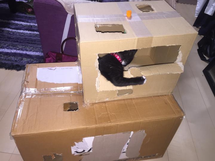 人間男が2階建てダンボールを作ってくれたニャ😻 本能がとまらないニャ😻