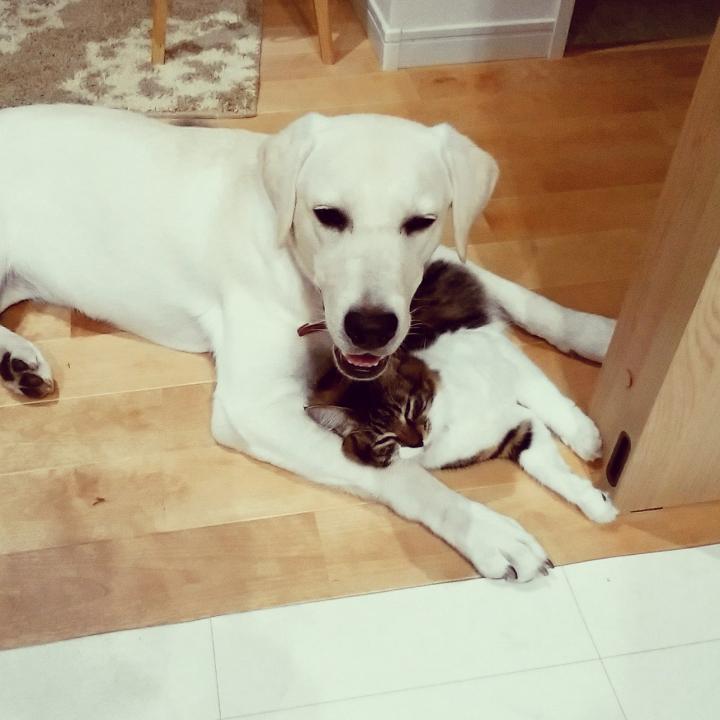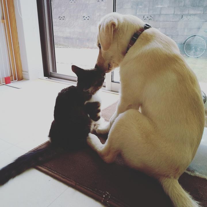 姉妹のように育ったので、ラブちゃんは自分が猫だと思んでた時期もありました。