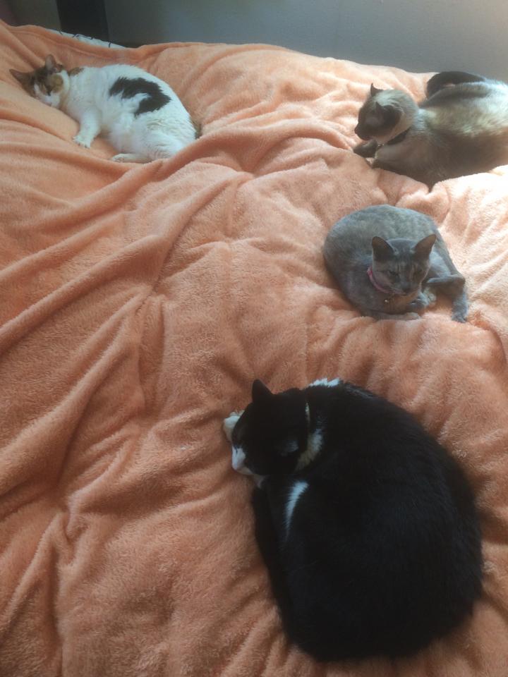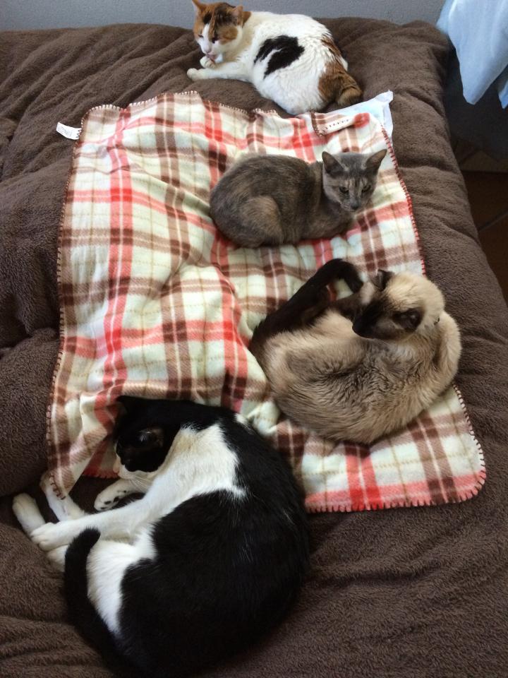 ザネリもみんなと一緒に毛布の上が好きだったな。