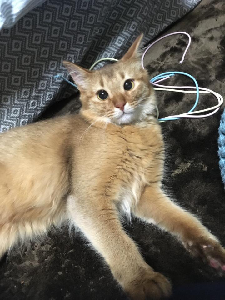 遊べ。と言われたらお気に入りの紐で思いっきり遊びます。