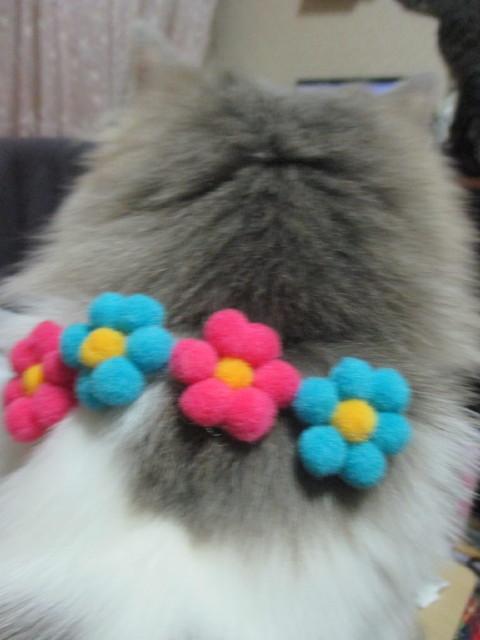 写真はまた後頭部なんだけど、後ろにお花の首輪って回っちゃうかしら???