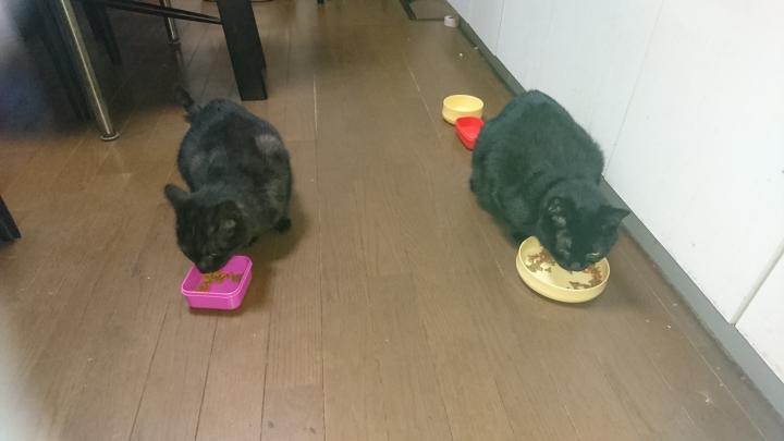 まだ 警戒心のある兼定だけど、ご飯は並んで食べるようになりました。