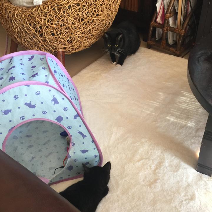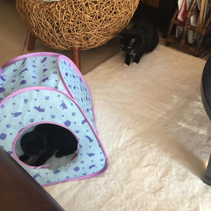 警戒追跡で疲れるニャ!チョコを追っているかと思うといつのまにか追われてるニャ⁉️チョコは、はえーニャ‼️
