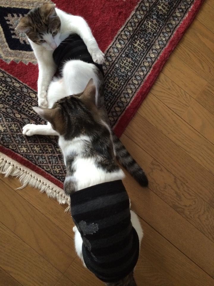 帰るなり、マリーちゃんにフーシャー攻撃されました。