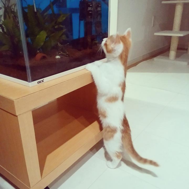 最近チャシーが水槽の存在に気づき、ことあるごとに眺めてます。