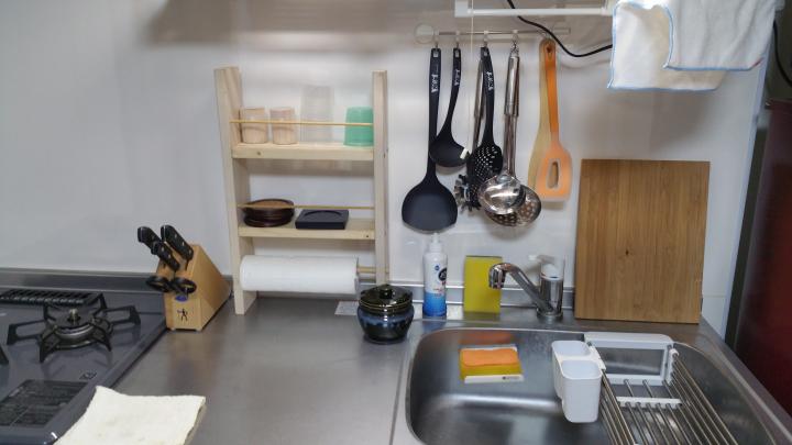 そのかわりにカウンターを置いてます。食器少ないですから。