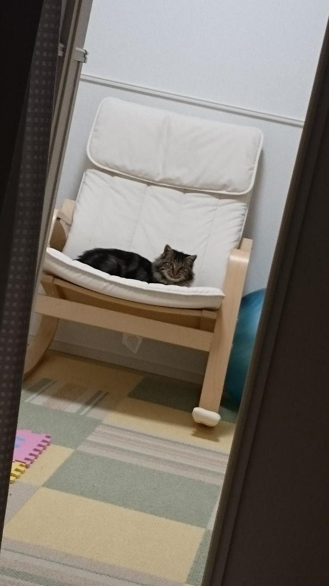 目の前の遊び部屋から視線を感じるなぁ…と思ってふと顔をあげたらロッキングチェアに乗っているバロンにガン見されておりました…。