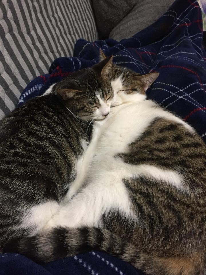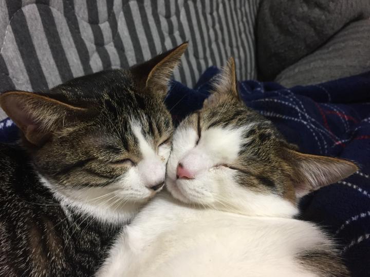 膝上は仲良く2匹で狭苦しくゴロゴロ。