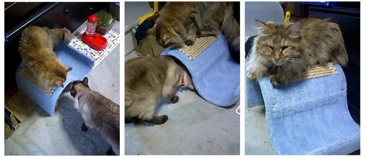 設置したらば早速二匹でサーチして・・・たと思ったら、のんがいきなり爪とぎ開始!