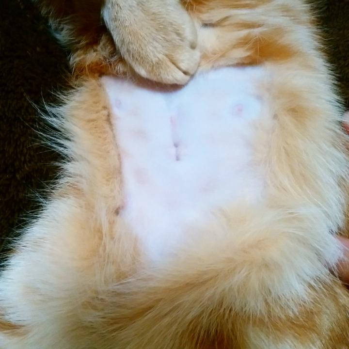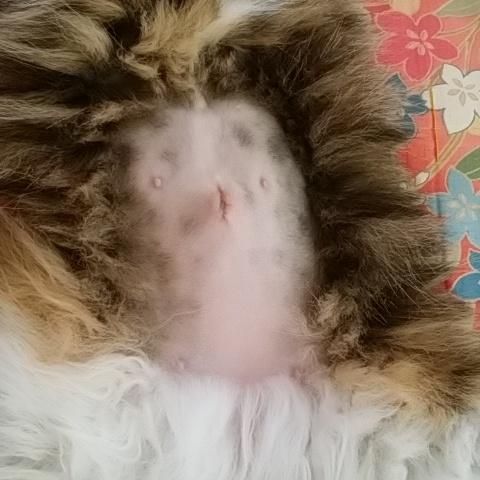 ちなみに、笑っちゃいけないけど、笑ってしまったシオンの傷痕です。(手術翌日)