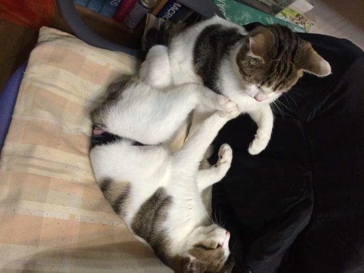 1日、何度となく、取っ組み合いのケンカをしてます。