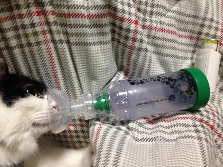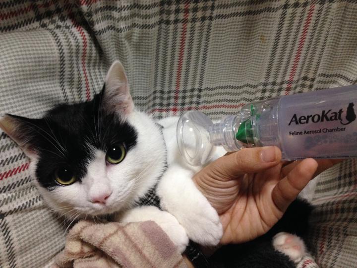 まだ1歳なので一生ステロイドも心配で吸入器AeroKatを輸入し、吸入開始。