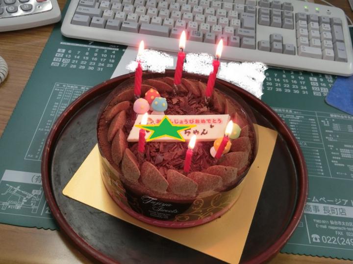 年齢がバレますが、同僚がケーキを買ってくれました。