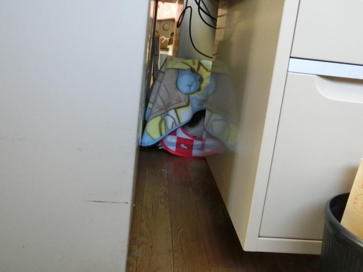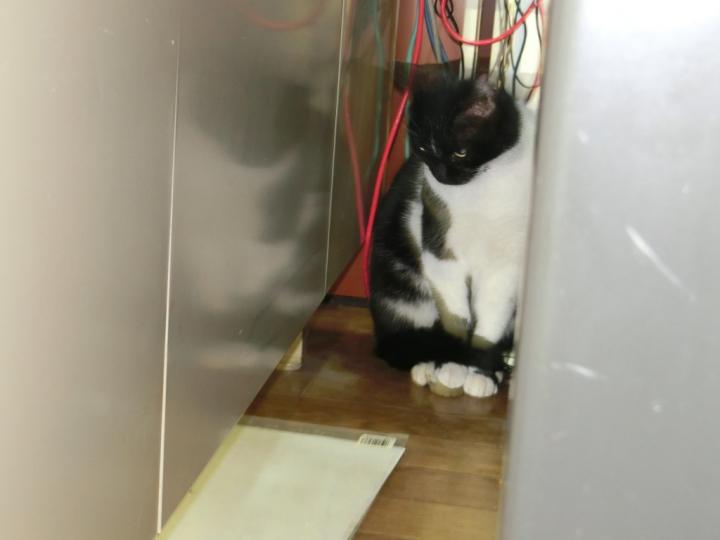 二階建事務所の(メイン入口は二階)一階の、ちょっと大事なPCのある机の下で怯えて大変でした。