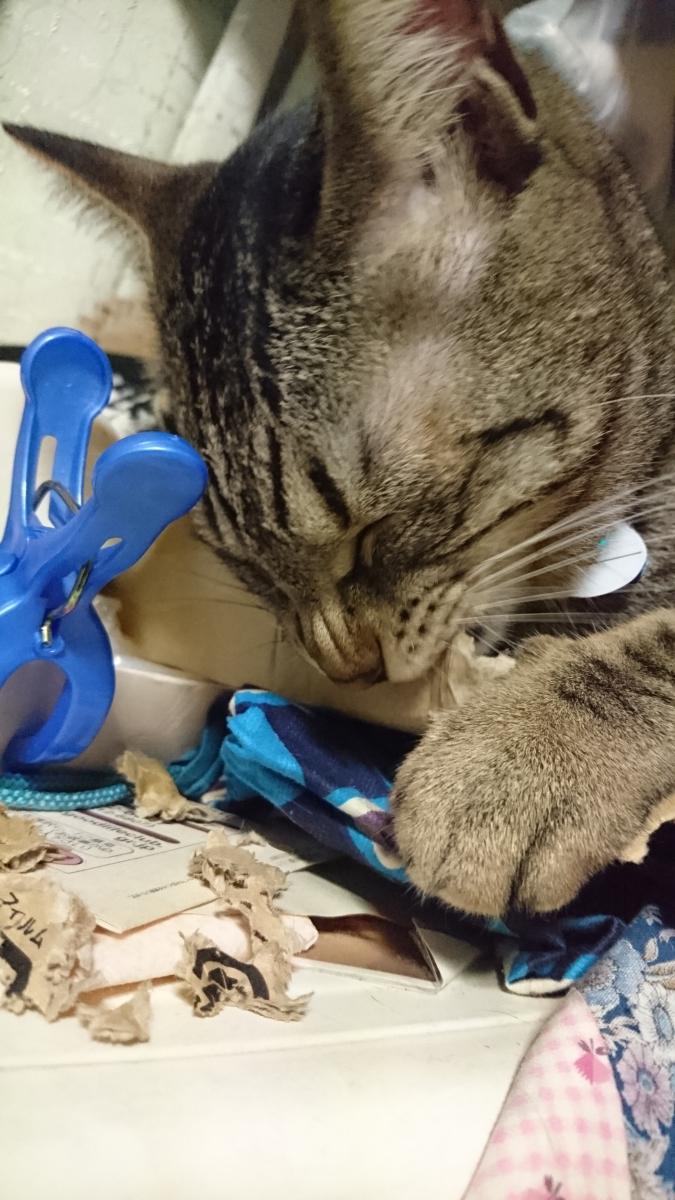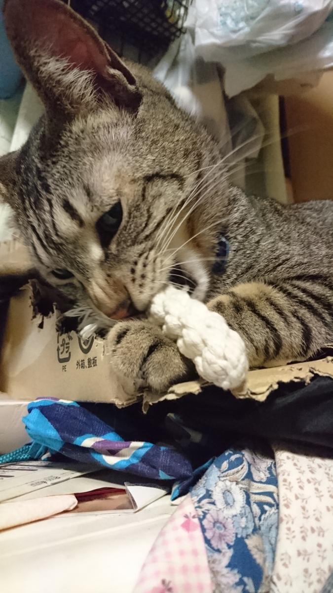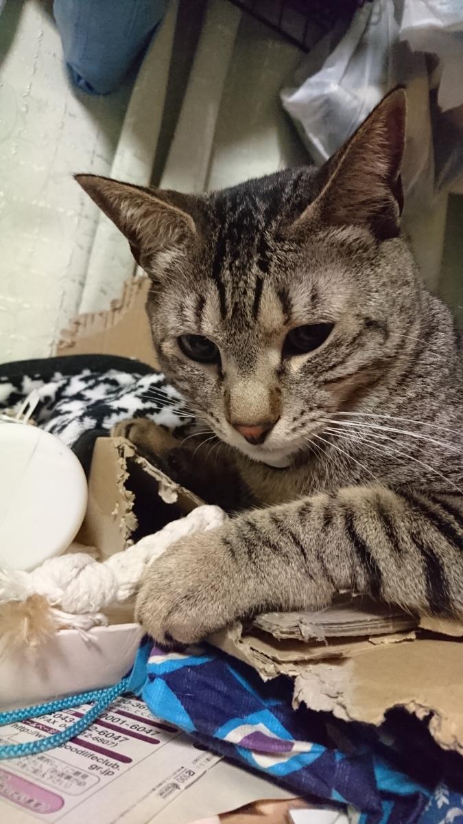 昨日は、トワの寝床に敷いてあるダンボールをガジガジ、ペッ!って壊しまくって…(;・∀・)