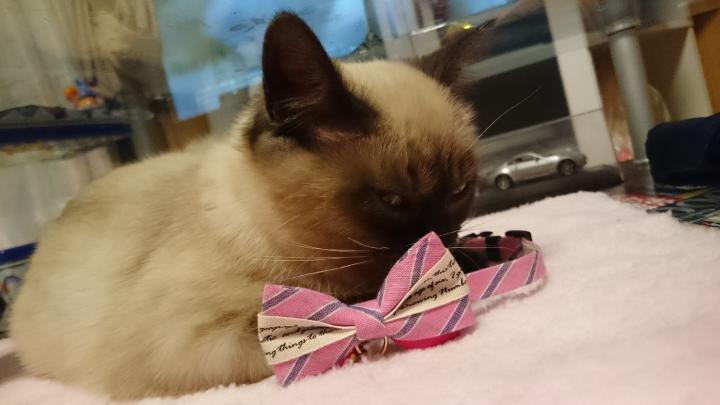 ちょっとリンにはまだリボンが大きく、付けると気になるのか永遠とくるくるクルクル🌀