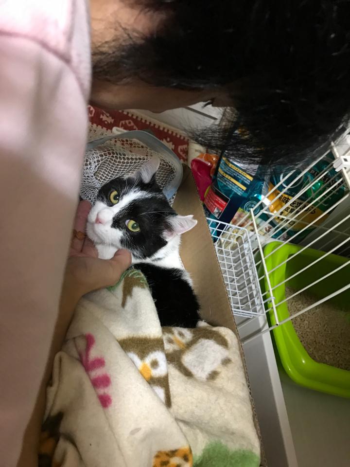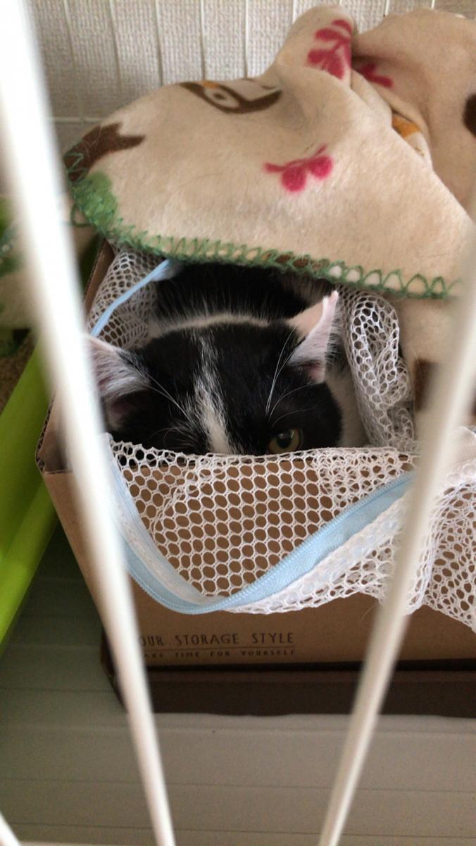 思いっきり威嚇して、また鳴いて、ダンボールかじってと不満の塊です汗