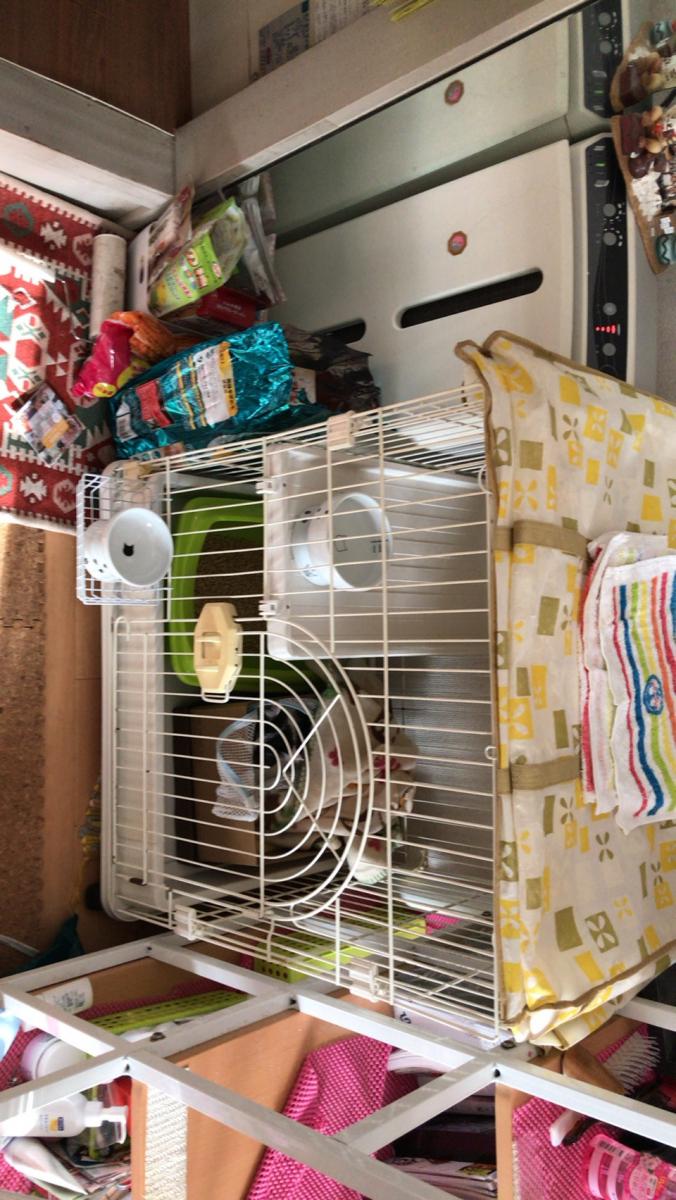 そのあとは、友人がなでなでしてましたが、威嚇してたのでケージに収まり、扉は開けておきました。