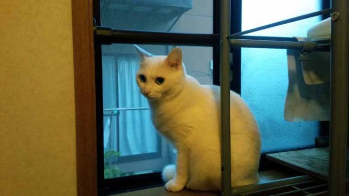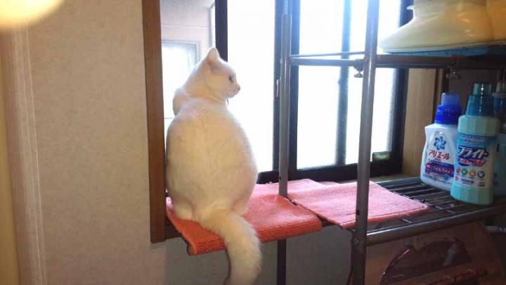 最近のセナちゃんのトレンドは洗面所の窓から外を眺める事です。