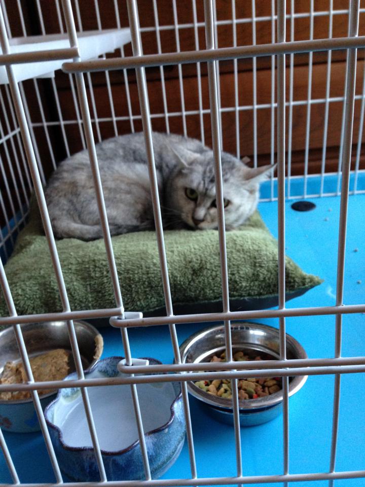 今迄のゲージは1段の狭いゲージだったので、予防接種の為にキャリーに移したついでに、2段の広いゲージにお引っ越しさせました。