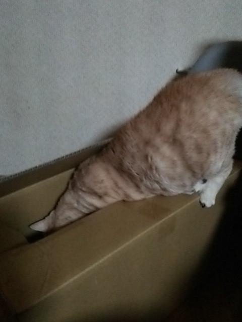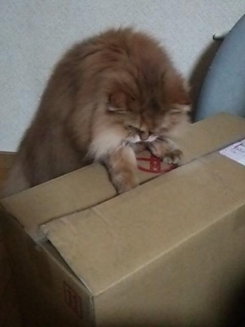 段ボールの開け口のテープが残っているので、なかなか開かずに入れない。