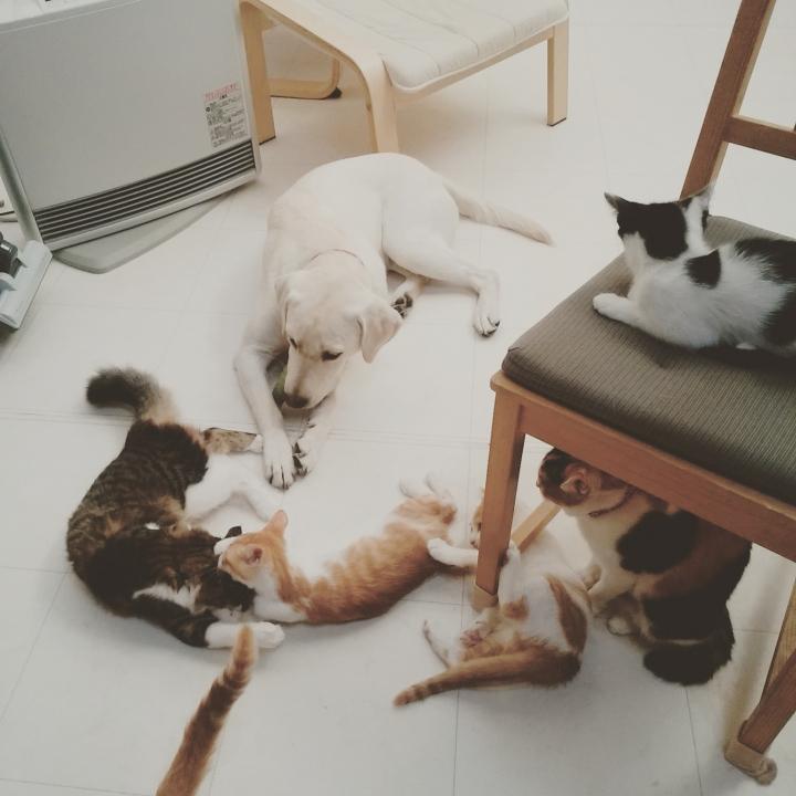 おかげでストーブ前がわんにゃん広場。なにかと人気のストーブ前ですが全員が揃ったは初めて。
