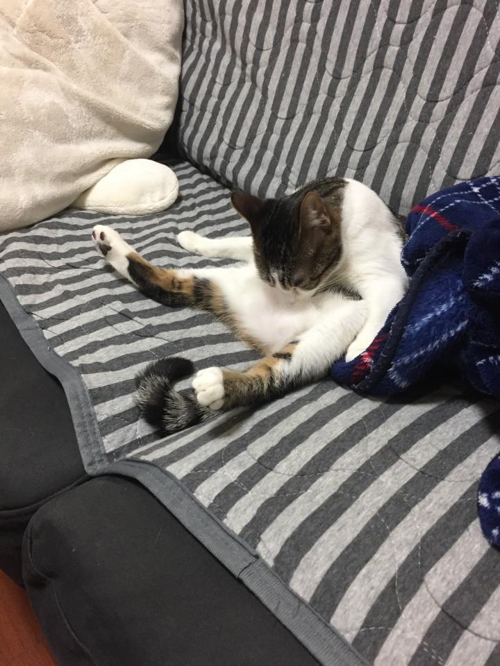 ペットホテルから帰って以来ベタベタ甘えん坊モード全開で、撫でていないと寝ないミィちゃん…