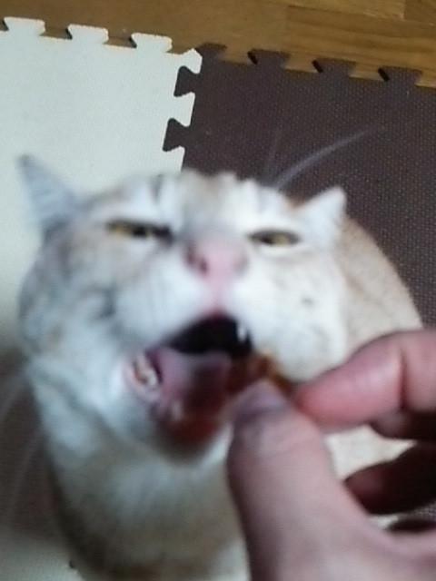 ガジローのササミをパクッ!とくわえて引っ込んでいくではありませんか!
