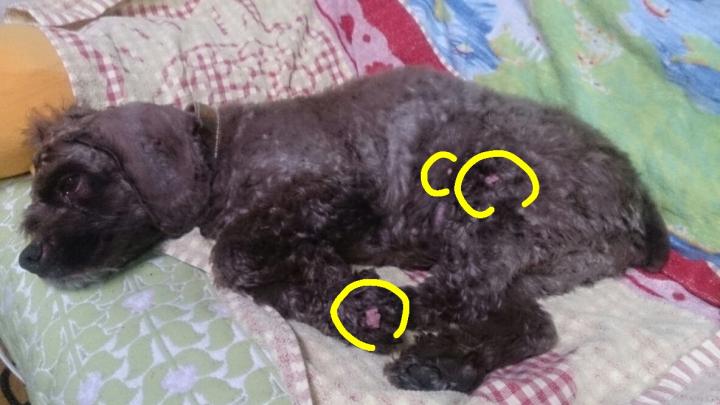 5年物の大きな大きなイボは、左後ろ足にぶらぶらしてます。